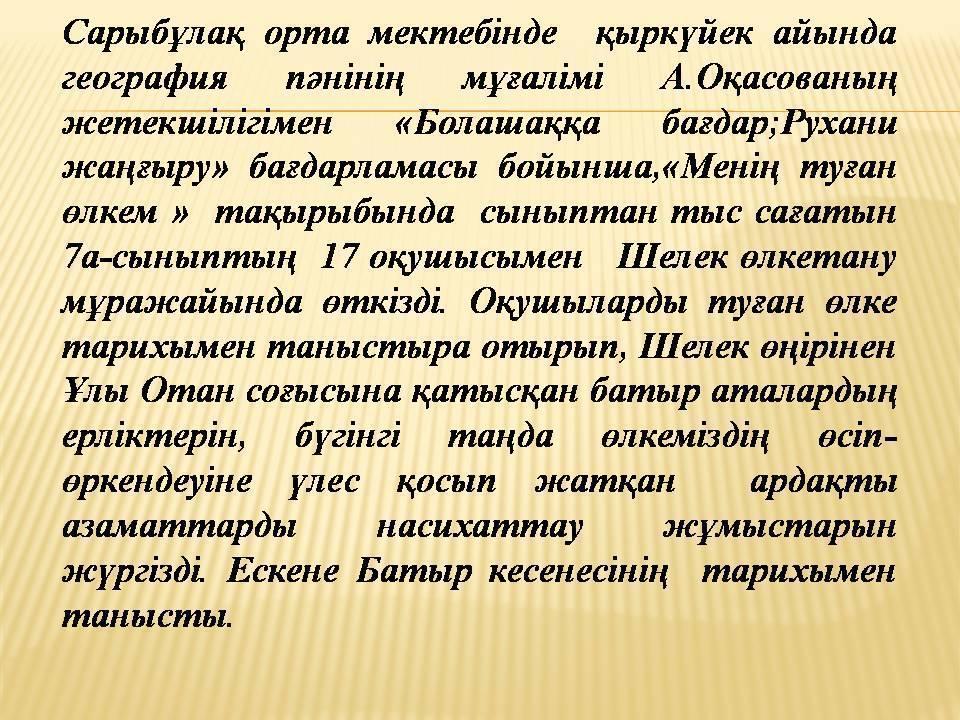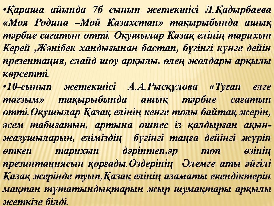 "Болашаққа бағдар; Рухани жаңғыру" тақырыбындағы іс-шара » Сарыбұлақ орта мектебі